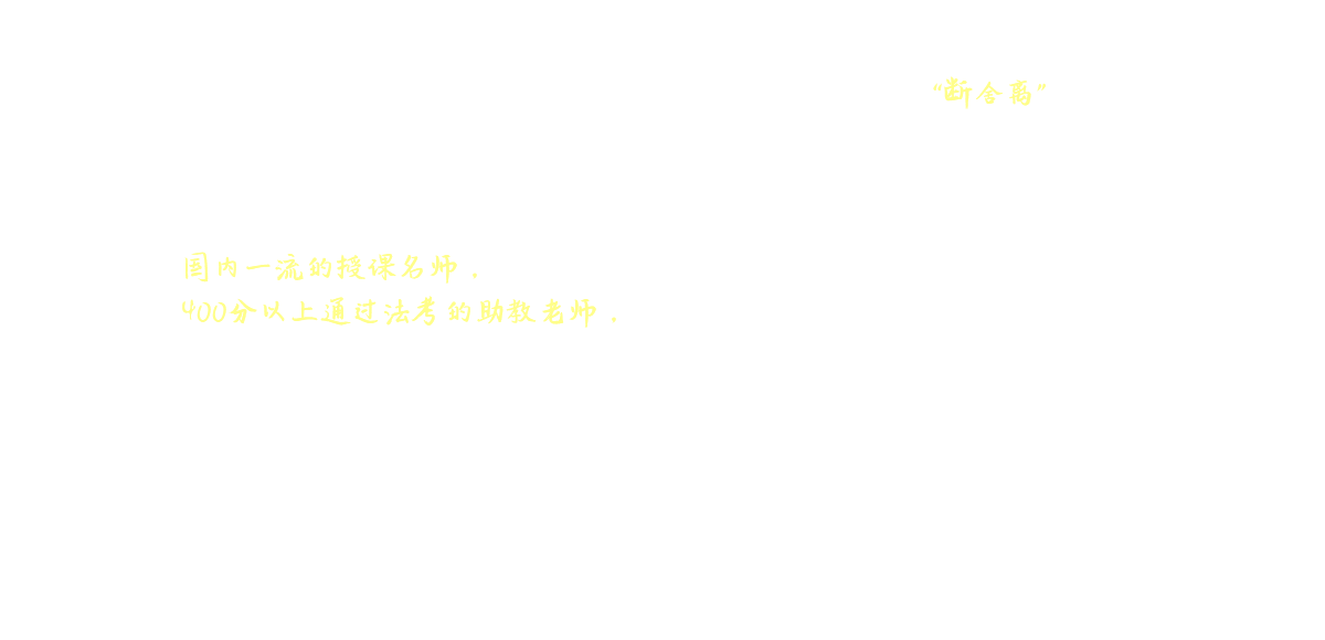 業(yè)內(nèi)實力派專家授課,幫你全面把握客觀題的重點、難點、熱點、必考點,讓你在考前兩個多月的時間里,把握最核心的高頻考點,不求面面俱到,只求用20%的時間掌握80%考點,得70%分?jǐn)?shù)(得分60%即為客觀題過關(guān))。 民法,方志平、陳飛;刑法,方鵬等;行政法,黃文濤;民訴法,蔡輝;刑訴法,左寧;商經(jīng)法,張海峽;理論法學(xué),白斌、楊帆;三國法,李毅。此外,還有一些不方便介紹的授課老師。 以上老師,限于押題信息的敏感性,有些老師不方便大規(guī)模宣傳介紹,有的可能你不太熟悉,但是絕對都是業(yè)內(nèi)實力派押題專家,在最后的兩個多月里,這些老師一定會讓你獲益匪淺,一定會讓你滿載而歸!