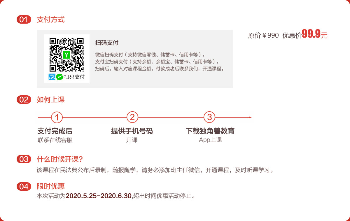 為了幫助2020年考生解決以上困惑,幫助考生快速搞定《民法典》新增考點,獨角獸網校校長親自梳理新增考點,與法考名師周洪江博士共同研發了“民法典新增考點20講直播課”,于2020年5月31日—6月4日直播講解。