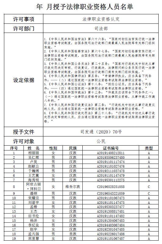 NO.1 2020年分三批授予法律職業資格