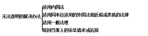 “不能查明”的認定標準 《最高院關于適用<涉外民事關系法律適用法>若干問題的解釋(一)》第十七條:人民法院通過由當事人提供、已對中華人民共和國生效的國際條約規定的途徑、中外法律專家提供等合理途徑仍不能獲得外國法律的,可以認定為不能查明外國法律。