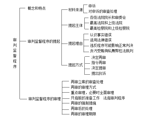 考點提示:審判監督程序中的申訴、審判監督程序提起的主體、理由、方式、審判監督程序的審理。