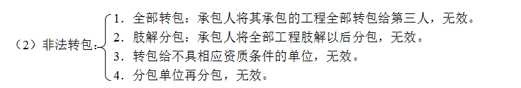 (1)合法轉包(經同意的部分轉包):轉包合同有效,共同對發包人負連帶責任。