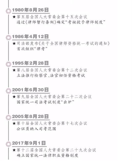 2017年9月1日,十二屆全國(guó)人大常委會(huì)第二十九次會(huì)議表決通過(guò)修改檢察官法等八部法律的決定,將應(yīng)當(dāng)取得法律職業(yè)資格的人員,從法官、檢察官、律師、公證員擴(kuò)大到從事行政處罰決定審核、行政復(fù)議、行政裁決的工作人員,以及法律顧問(wèn)、仲裁員(法律類),同時(shí)將“國(guó)家統(tǒng)一司法考試”修改為“國(guó)家統(tǒng)一法律職業(yè)資格考試”。